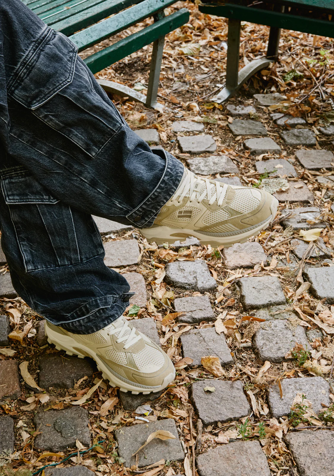 Texturas, colores y detalles muy afinados se fusionan para crear una estética de contrastes. Nuestro modelo 347 cuenta con una estética chunky. Sus rejillas de nylon de alto gramaje se combinan con distintos acabados y tonalidades beige. Presenta nuestra bandera en uno de sus laterales y cuenta también con cierre ajustable de cordones.