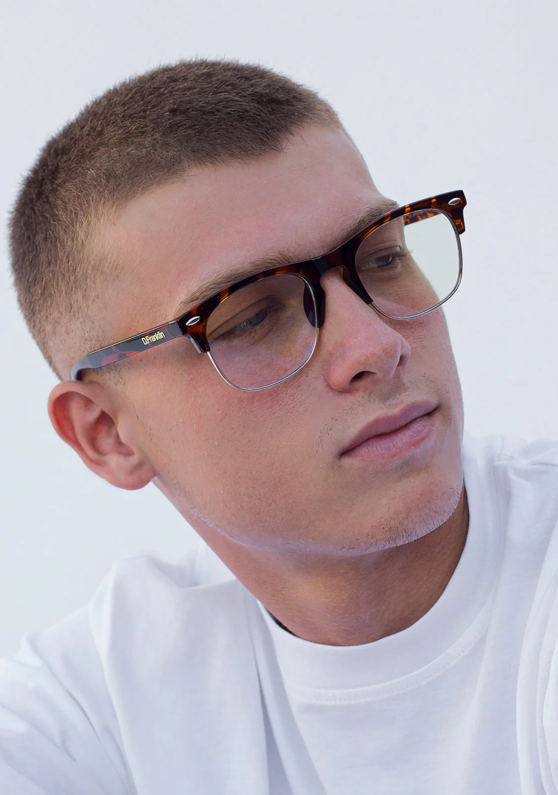 La montura semi al aire y el efecto brillo de las gafas America SQ Carey / Blue Block de D. Franklin hacen que este estilo sea único.