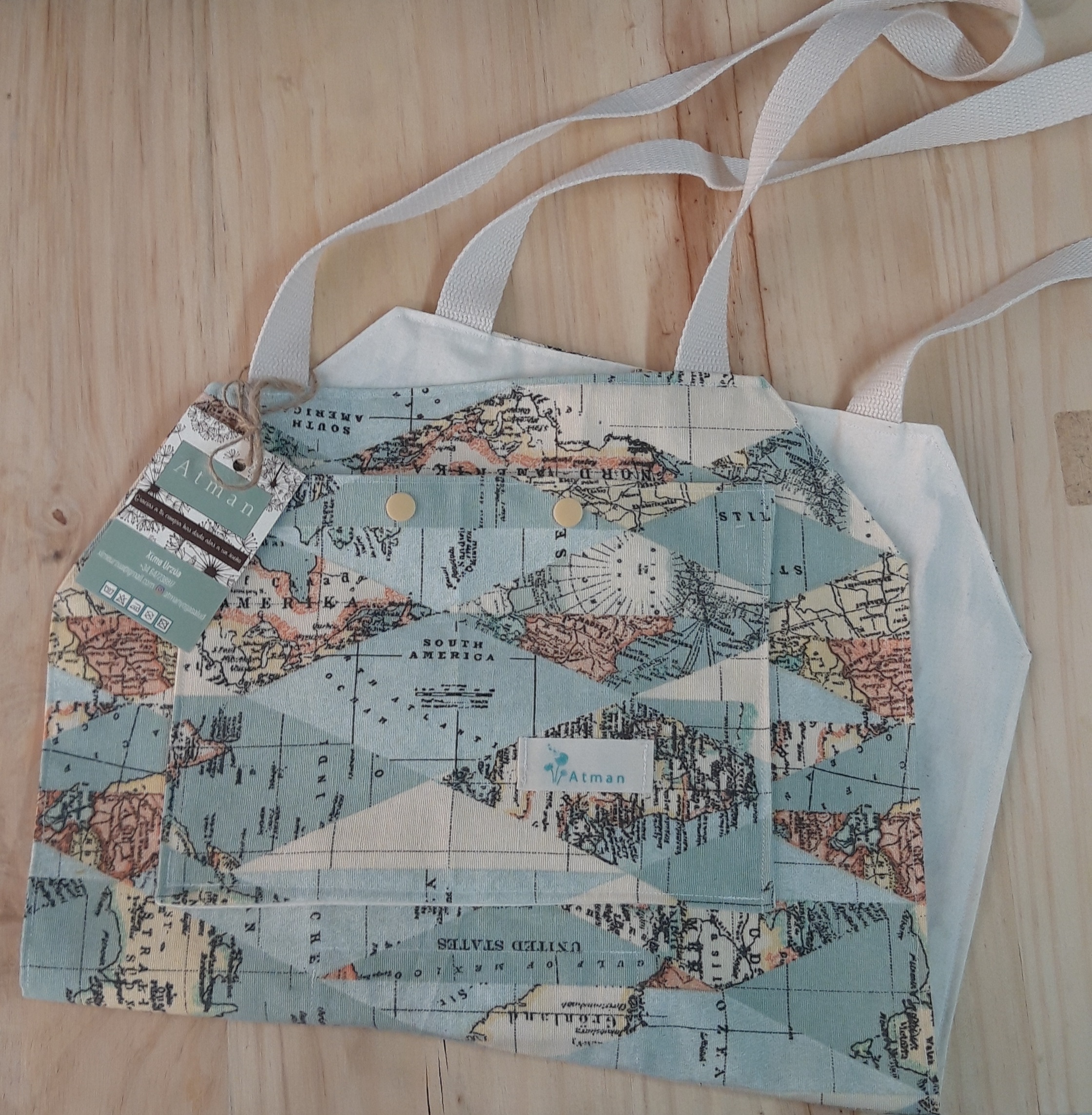 Es una bolsa muy completa a parte de bonita. Medidas: Cuando está plano y abierto, el cuerpo de la bolsa es 35 cm de ancho x 53 cm de largo. Dispone de dos bolsillos, uno exterior y otro interior con cierres de snap. En la parte interna lleva un pequeño mosquetón para colgar tus llaves, y también una pieza con sujeciones de velcro para fijar la esterilla en dos posibles posiciones. Se puede insertar una esterilla de máximo 19 cm de diámetro. Asas de algodón de 70cm. Lavable a máquina, máximo a 30º.