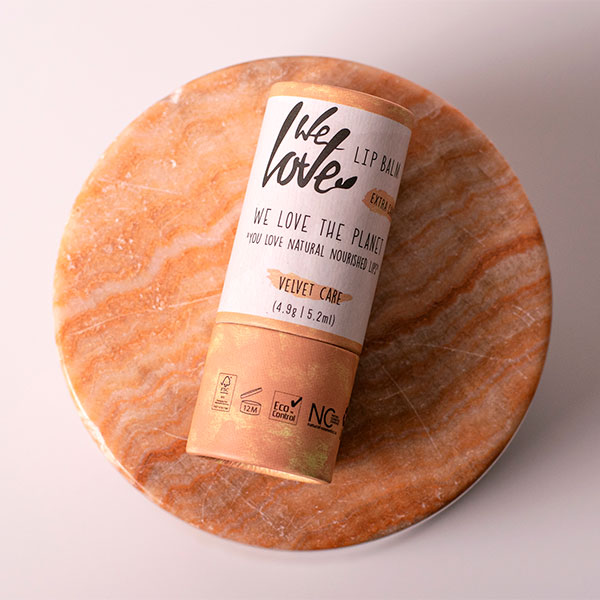 Si quieres cuidar, hidratar y proteger tus labios, nada mejor que el Bálsamo Labial en stick Velvet Care de la marca We Love The Planet. Su fórmula sólo contiene ingredientes naturales y de cultivo ecológico. Y su envase de cartón es totalmente reciclable.