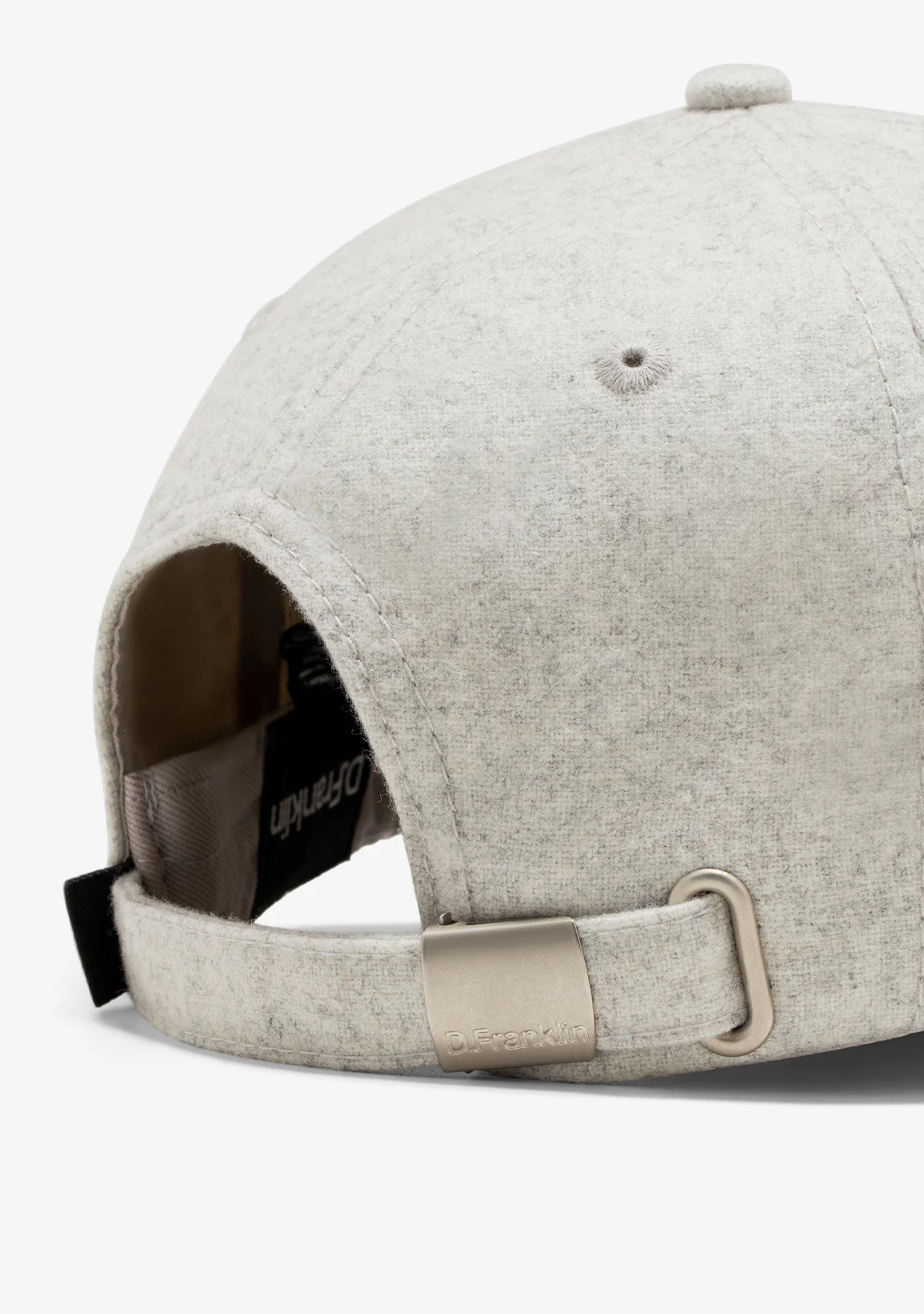 Gorra diseñada en tejido de mezcla de lana gris con emblema D.Franklin en el lateral de la parte frontal a contraste en negro. Además, cuenta con sistema snapback de trabilla ajustable con hebilla de metal en la parte trasera.