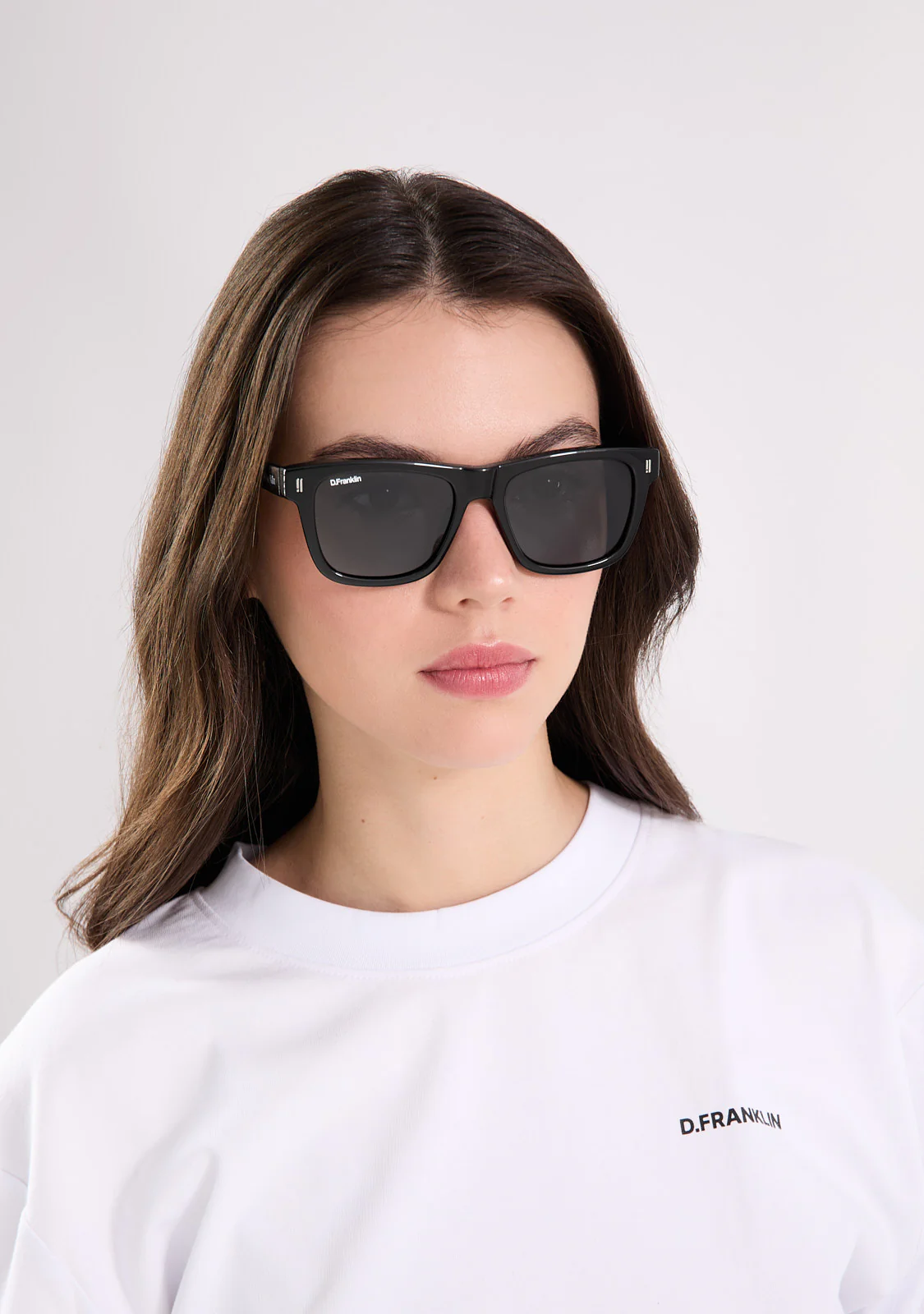 Las Boyd Black / Black de D.Franklin son el equilibrio perfecto entre diseño moderno y funcionalidad. Estas gafas de sol, con un frontal y puente fabricados en TR90, destacan por ser ultraligeras y resistentes, mientras que las varillas de acetato garantizan una mayor durabilidad y comodidad para el uso diario.