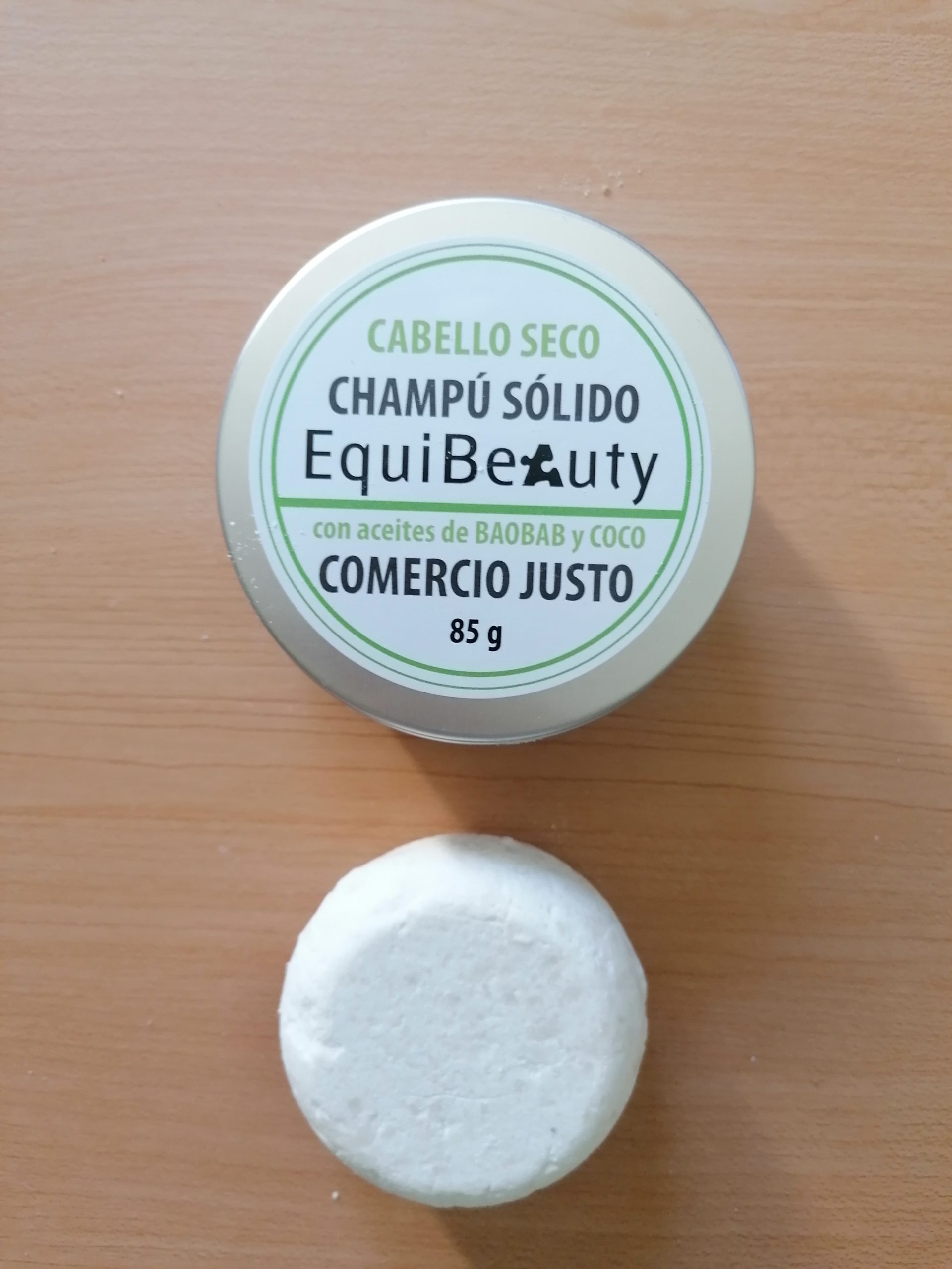 El champú sólido para cabellos secos de Equimercado, es un producto vegano, ecológico y sin sulfatos. Está elaborado con tensioactivos vegetales obtenidos del aceite de coco. Además contiene aceite de Baobab tiene un efecto calmante y anticaspa, dejando un cabello brillante e hidratado.