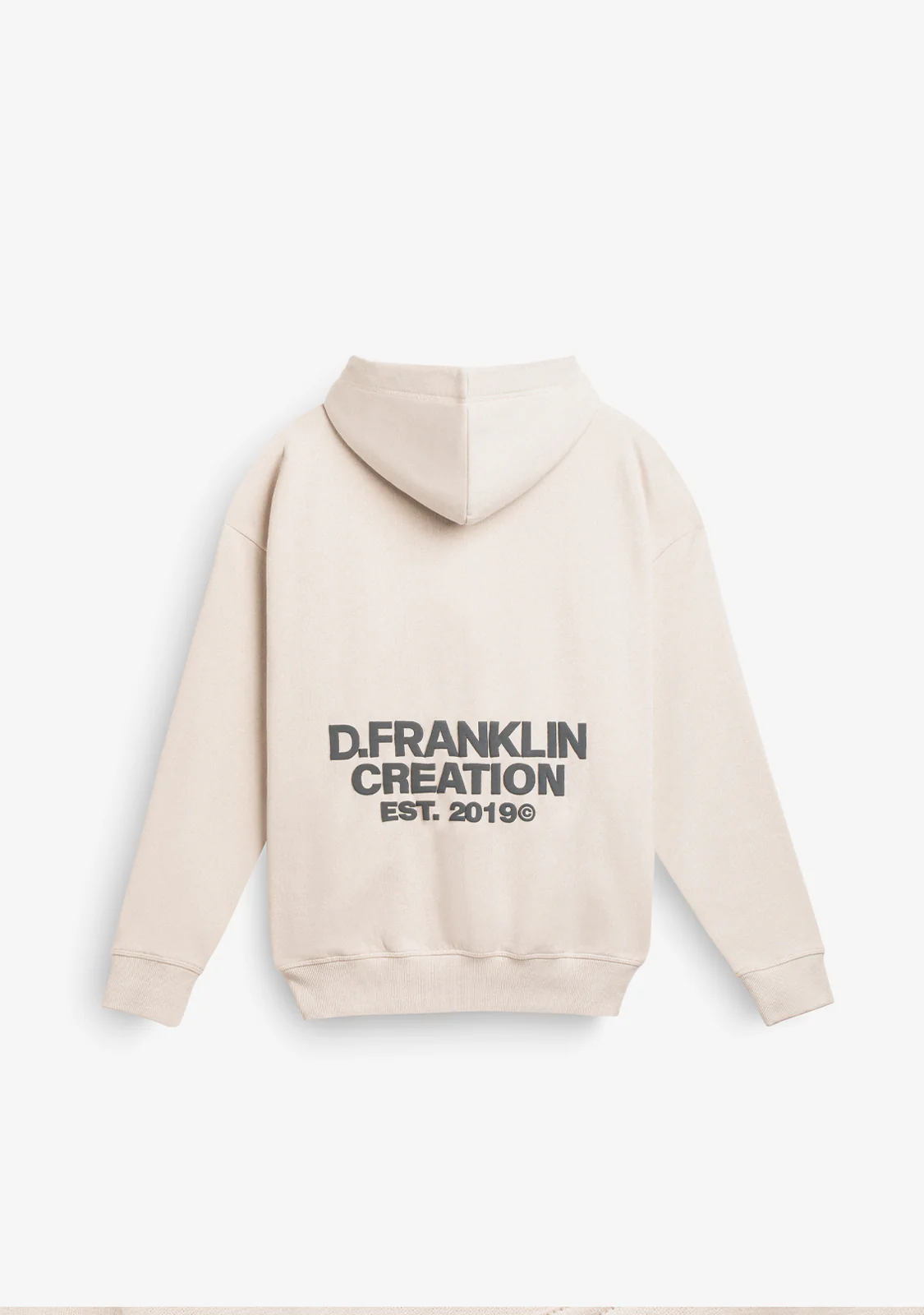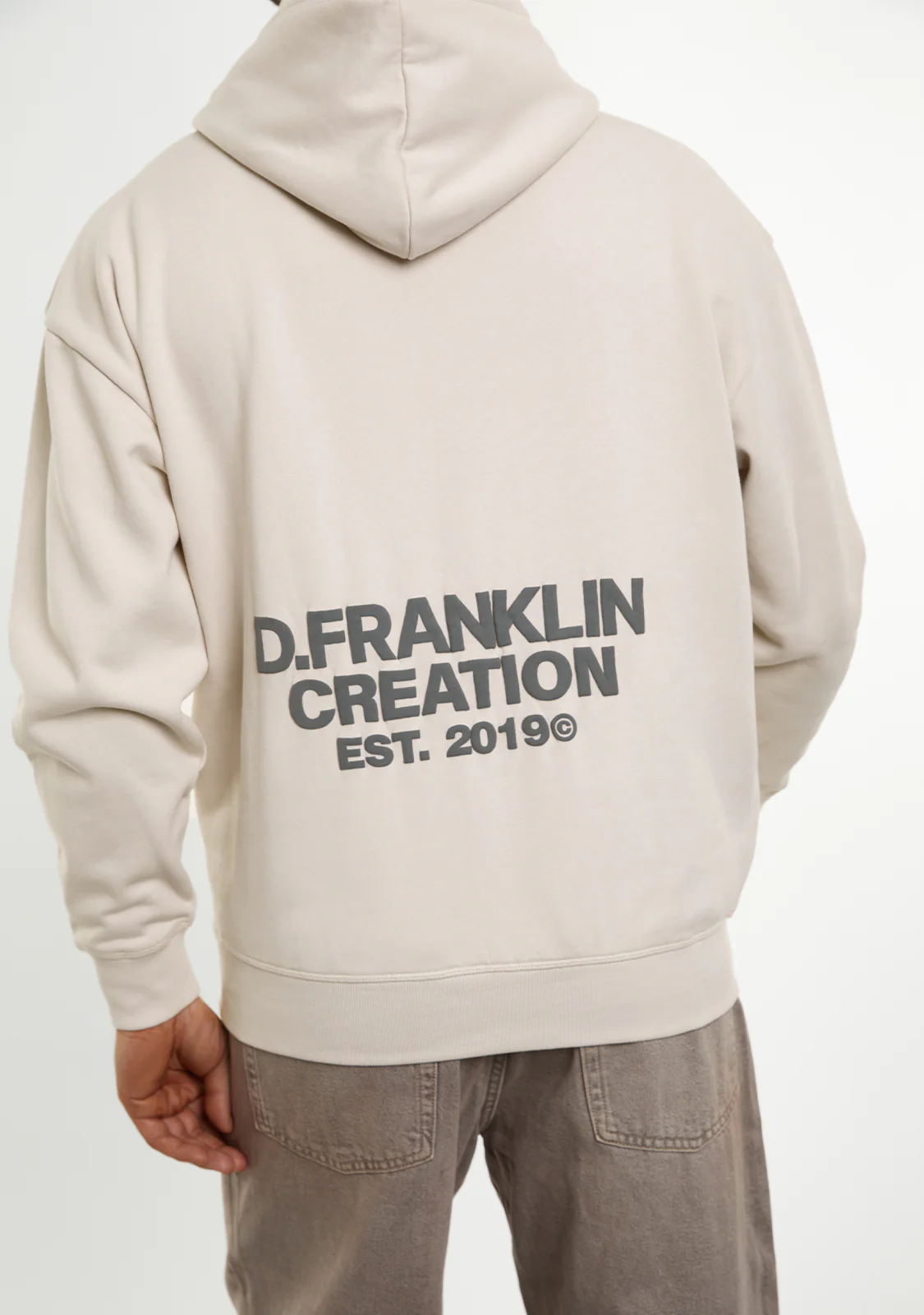 Esta sudadera gris oversize y con capucha cuenta con el logo D.Franklin en la parte delantera y con un diseño exclusivo en la parte trasera, ambos diseños a contraste en negro y con relieve.