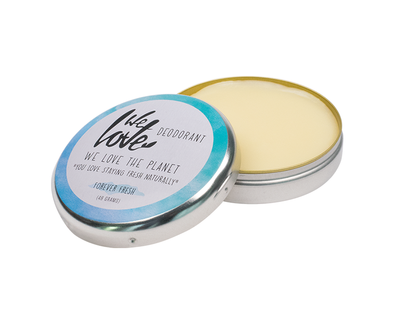 El desodorante en crema We Love The Planet se presenta en una elegante y práctica lata metálica.
