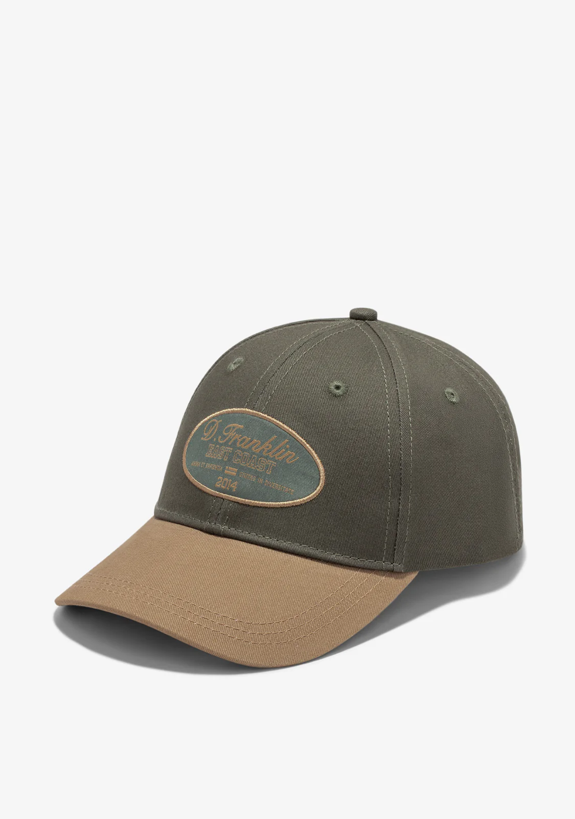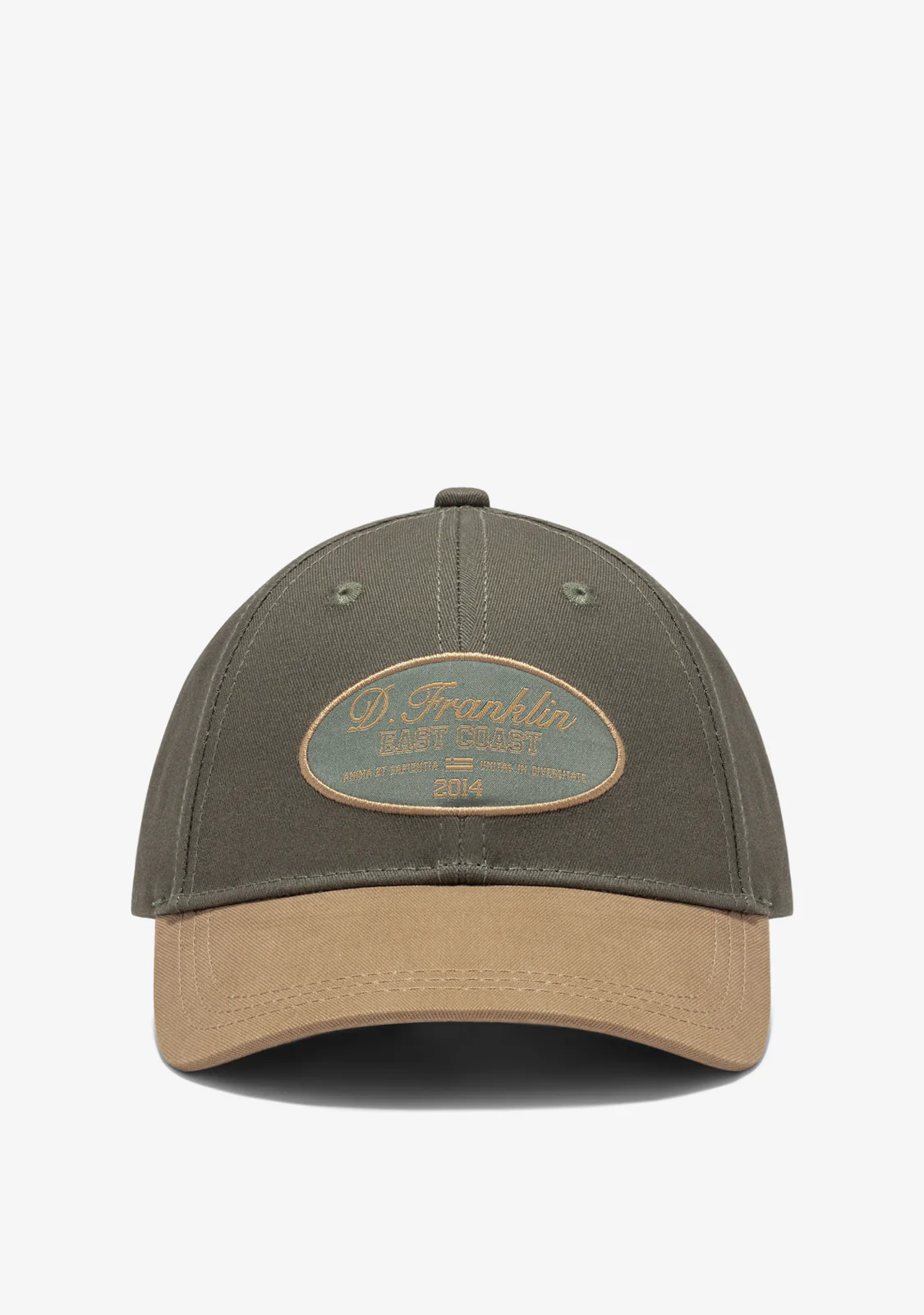 La East Coast Baseball Cap Green de D.Franklin es una gorra verde unisex estilo béisbol con la visera en tono dorado. Hecha con 100% algodón, lo que le da una textura muy suave a esta gorra de béisbol.