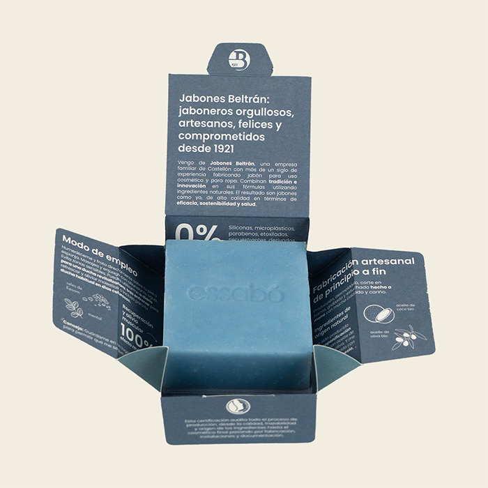 Es un jabón vegano y viene envasado en cartón reciclable, por lo que es un producto Zero Waste. Es más, su pastilla de 120 gramos equivale a 3 jabones líquidos de 300 ml.