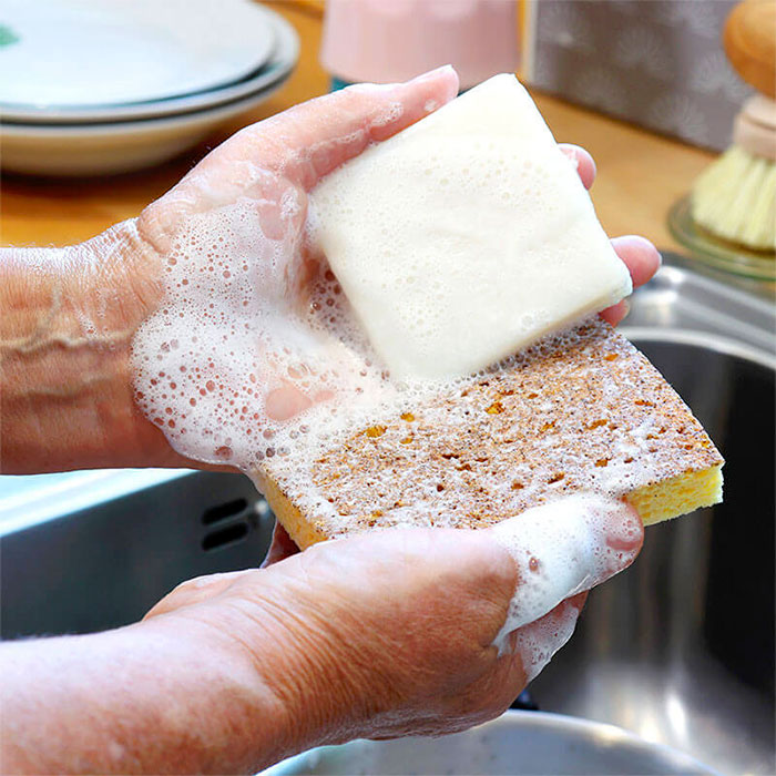 Un producto eficaz y natural para limpiar, sin tóxicos ni plásticos, la vajilla de toda la familia.
