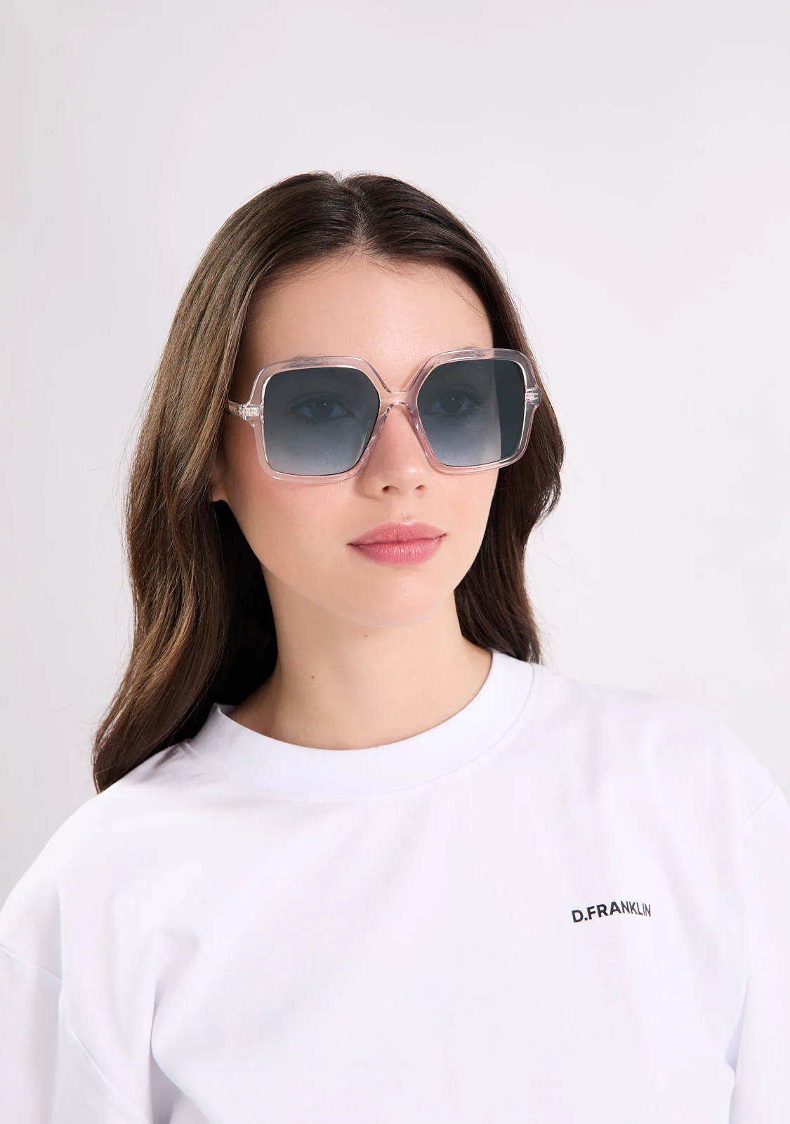 Las Margot Transparent / Gradient Blue de D.Franklin son la elección perfecta para quienes buscan un equilibrio entre diseño moderno y comodidad. Fabricadas con un frontal, puente y varillas en TR, estas gafas ofrecen ligereza y resistencia, asegurando un ajuste cómodo durante todo el día.