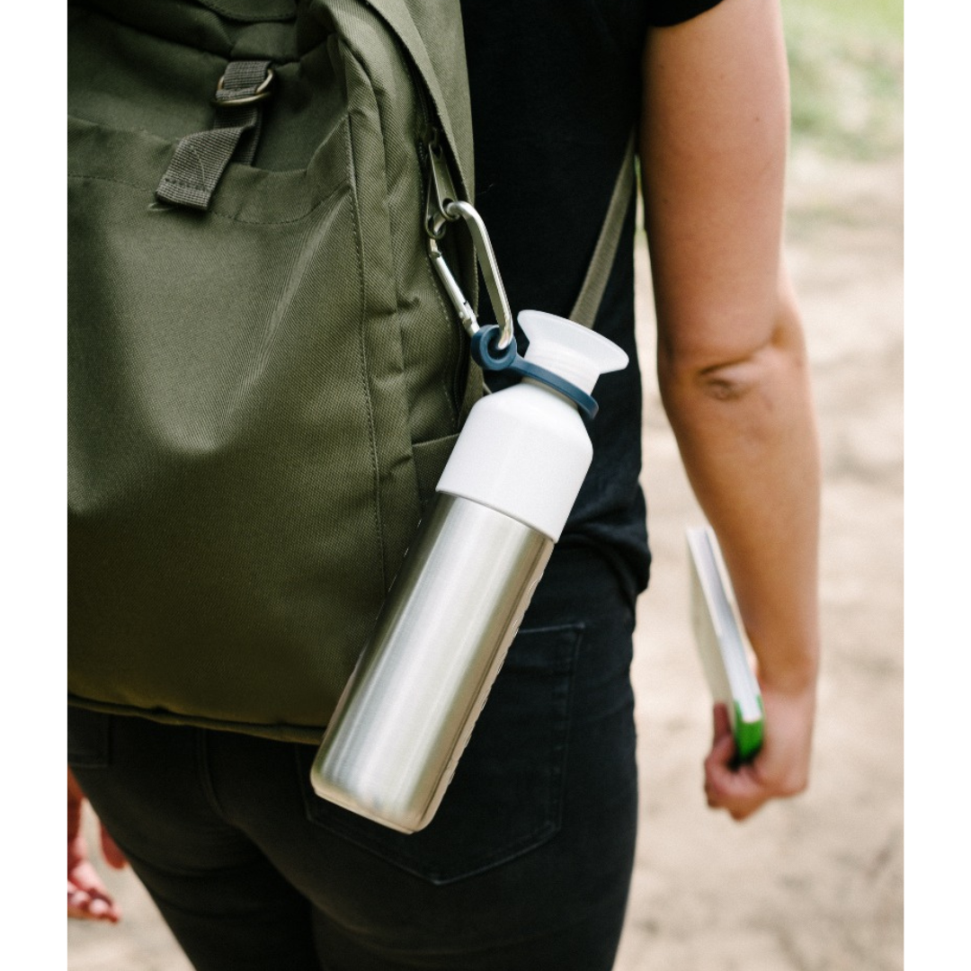 El mosquetón para botella Dopper es el complemento ideal para tu botella Dopper. Es compatible con todos los modelos. Con este gancho, tu botella siempre estará allí donde más la necesitas: al alcance de la mano.