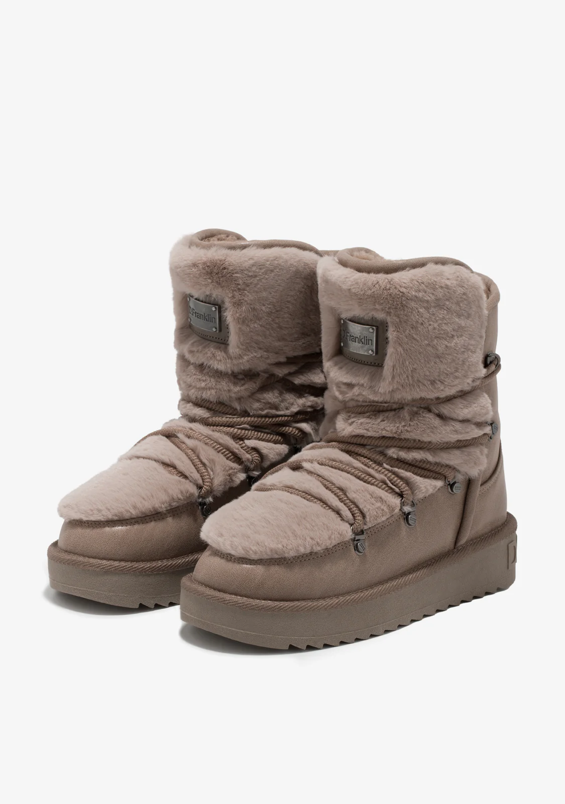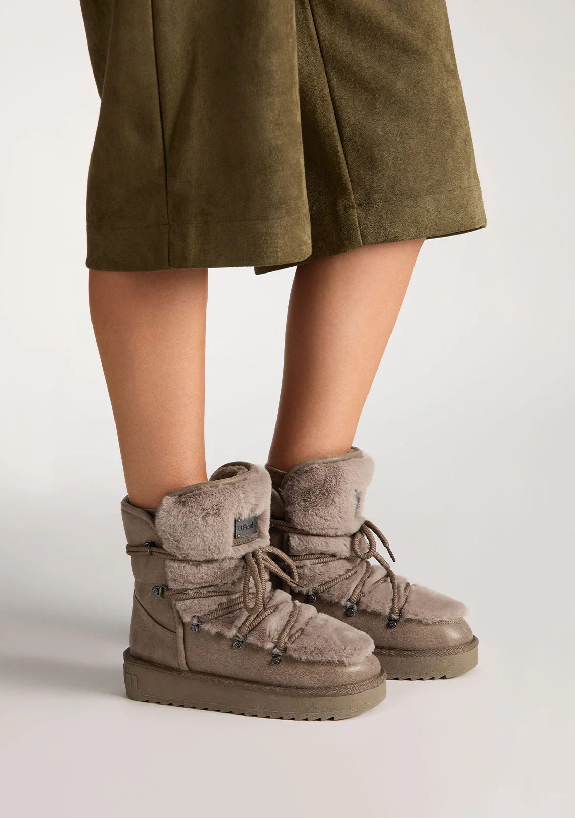 Las Nordic Trk Fur Taupe están confeccionadas con un exterior de material sintético pensado para resistir el uso diario y aportar una estructura firme al botín. La parte superior incorpora pelo sintético suave, que ayuda a mantener el calor en los días fríos.