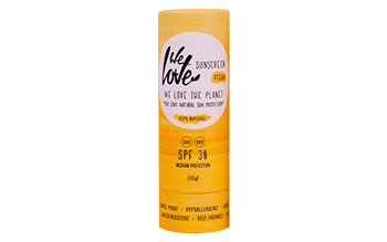 El Protector solar SPF30 en stick de We Love the planet es un producto vegano apto para todo tipo de pieles gracias a su formulación ecológica sin filtros químicos. Entre sus principios activos encontramos los aceites vegetales de coco y de girasol, que nos aportan una nutrición extra a nuestra piel, muy necesaria tanto en invierno como en verano.