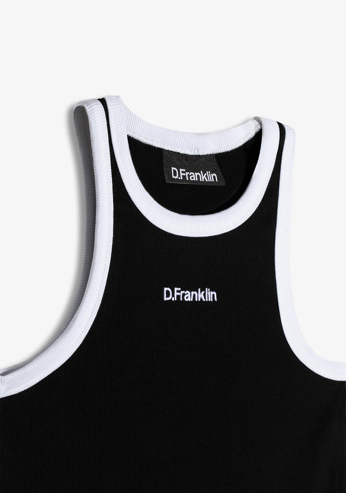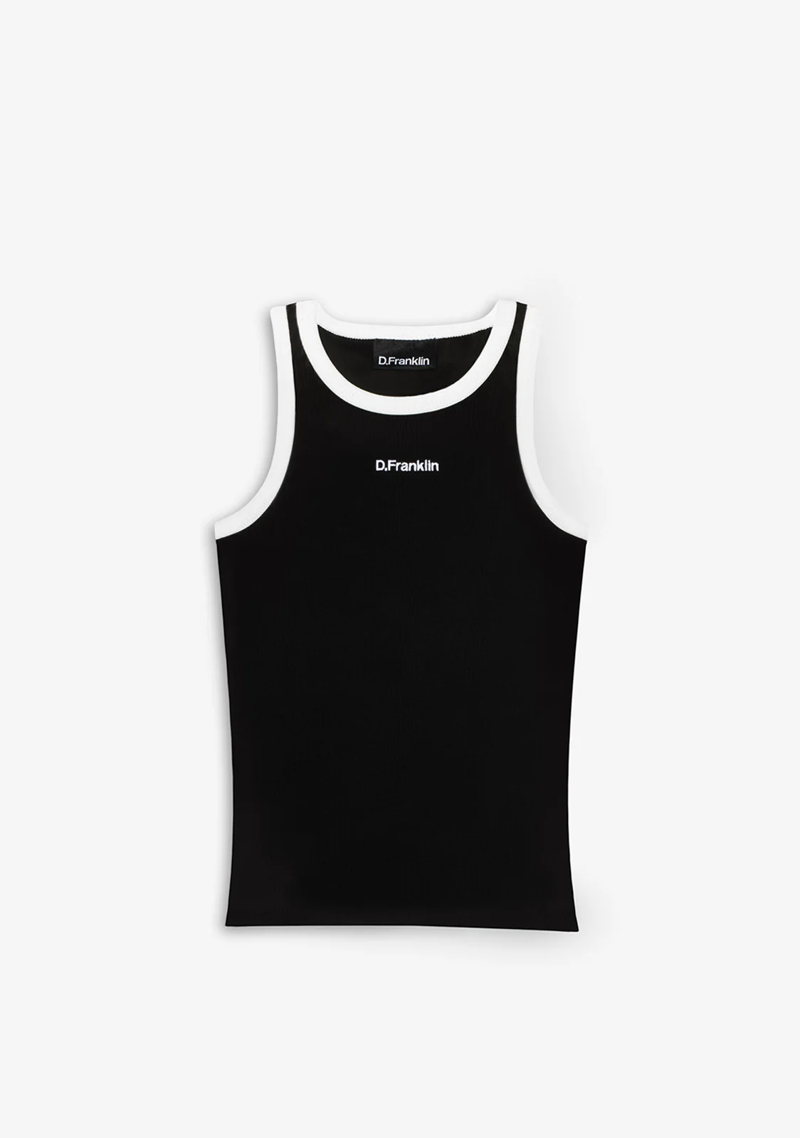 El Rib Tank Top Black / White de D.Franklin es la camiseta sin mangas que necesitas para destacar con estilo y confort. Confeccionada con 95% algodón y 5% elastano, su tejido de 280 GMS es suave, resistente y tiene la elasticidad perfecta para adaptarse a tu cuerpo.