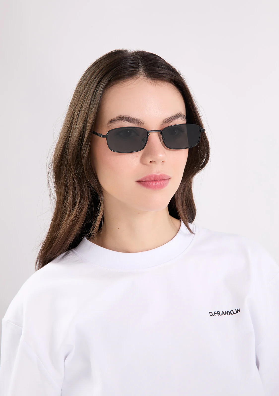 Gafas de sol translúcidas con diseño geométrico. El legado de las piezas más icónicas de los 70 se fusiona con una selección de detalles actuales.