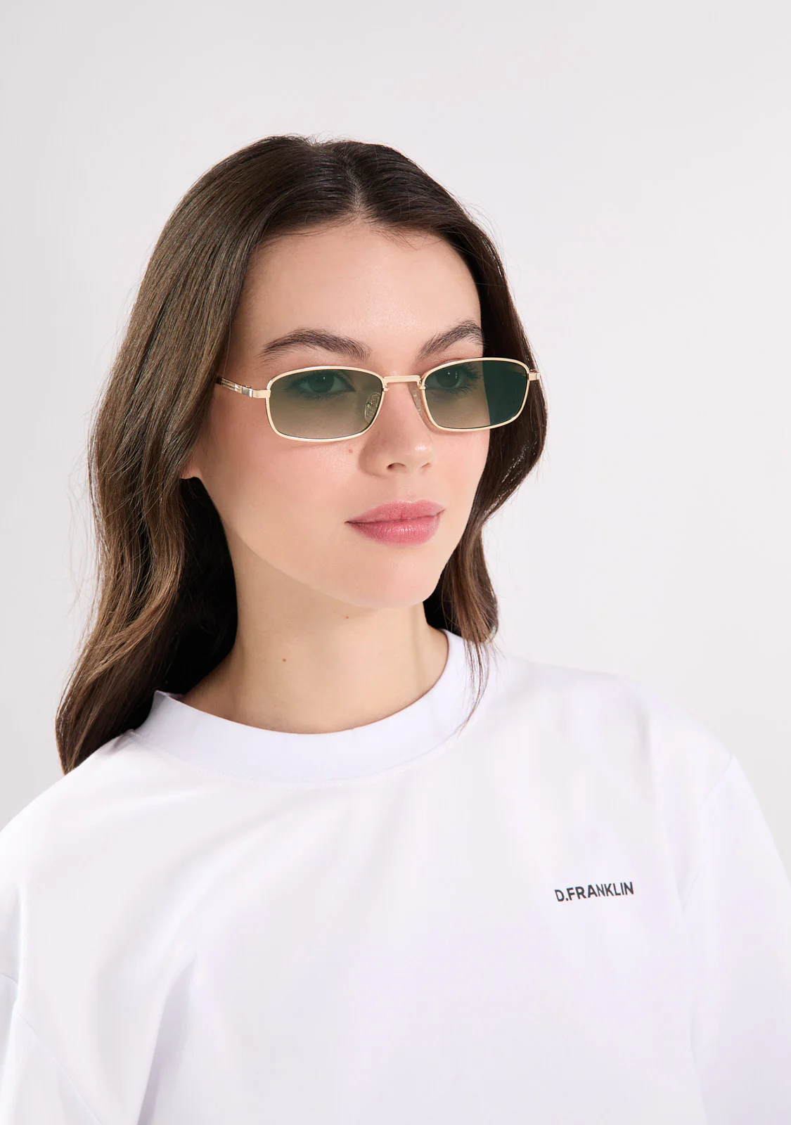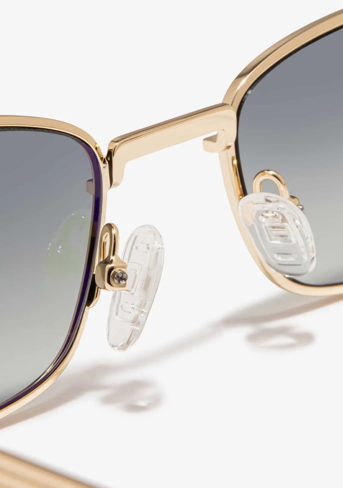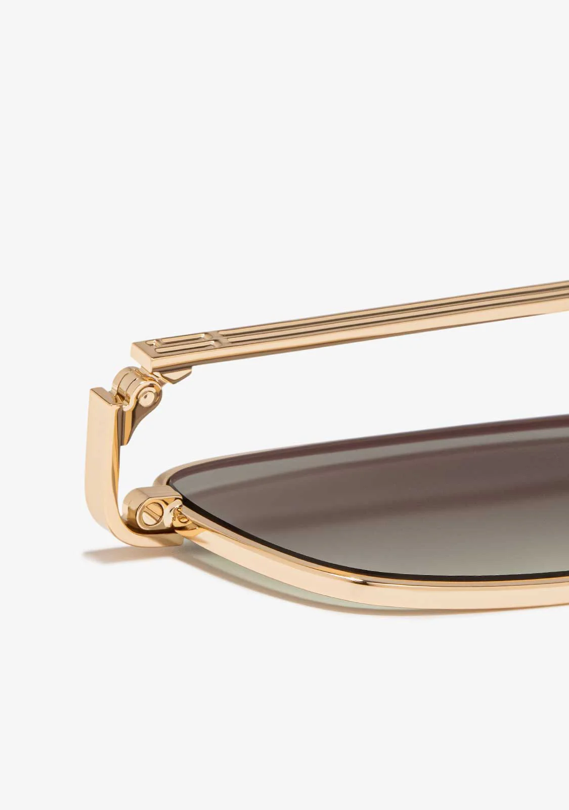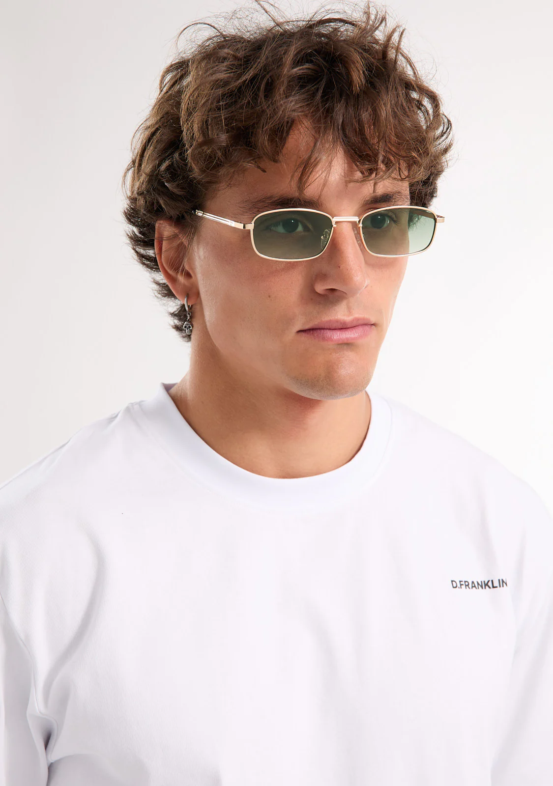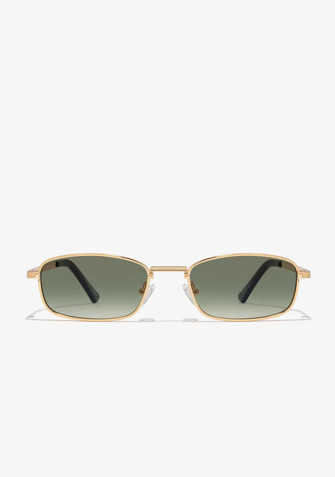 El diseño Square Legacy presenta un acabado metálico con estética rectangular. Su montura en tono dorado ha sido diseñada con unas lentes antirreflectantes con degradado color verde que permiten traspasar la mirada y definir las facciones. Su frontal es de 142 mm y su ancho de lente de 56 mm. Las patillas tienen una longitud de 140 mm y cuentan con nuestros detalles distintivos. Una pieza retro a la vez que minimalista con la que enmarcar cualquier estilismo.