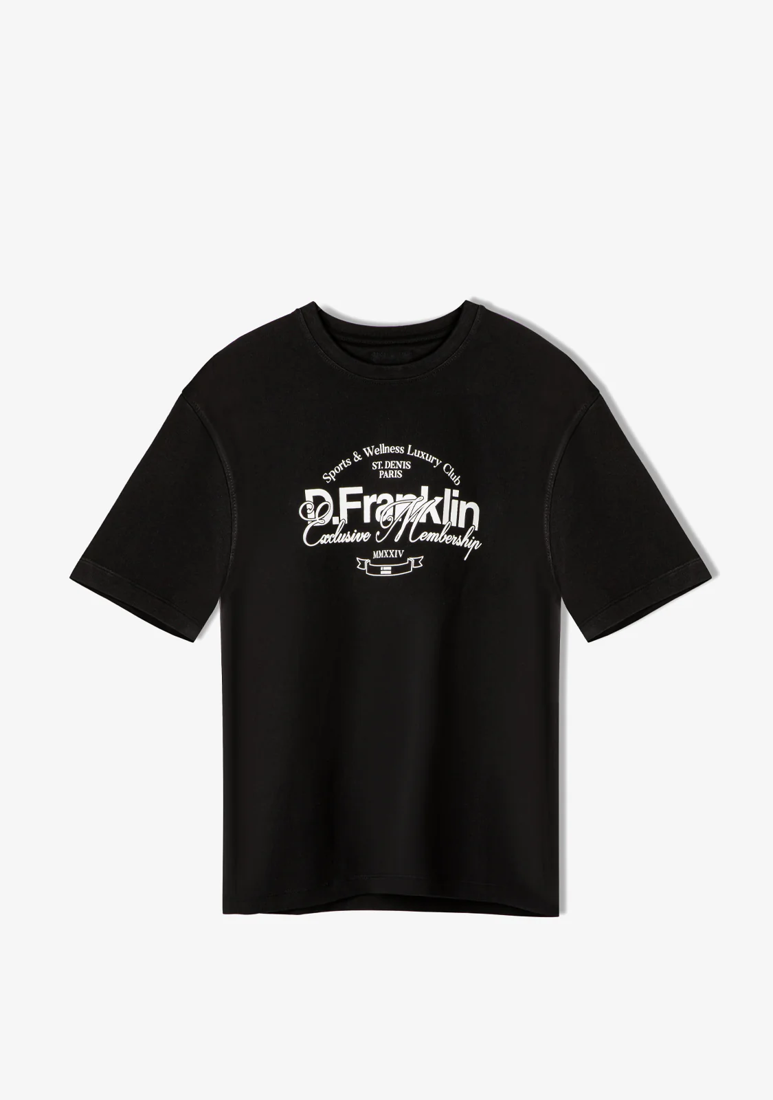 Esta pieza en tono negro cuenta con el estampado St. Denis en blanco. Además, la zona de la espalda cuenta con un diseño exclusivo en el mismo color con el que hace un guiño a la filosofía old money.