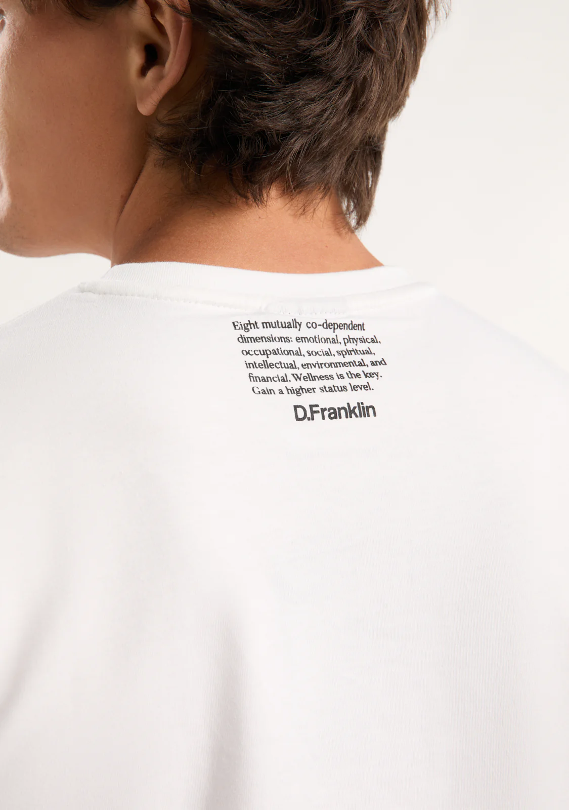 Esta pieza en tono blanco cuenta con nuestro logo en la parte frontal junto con un lettering a contraste en negro. Además, la zona superior de la espalda cuenta con un diseño en el mismo color que define la estética de la colección.