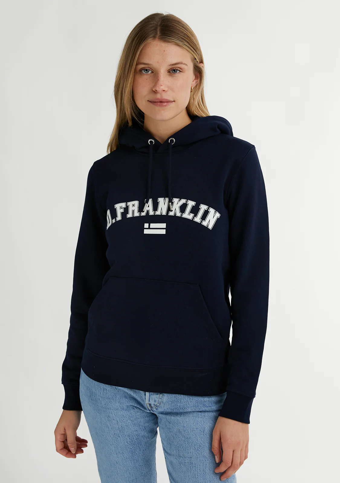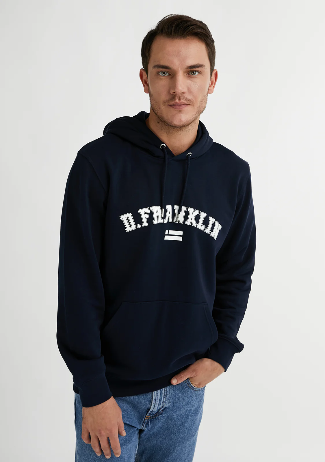 Únete al estilo D.Franklin con nuestra última colección de sudaderas. Caracterizadas por su sencillez, son la combinación perfecta entre los colores más básicos y la aplicación de un logo central. La Varsity Hoodie Navy / White está fabricada con los mejores materiales, lo que le confiere una gran transpirabilidad, elasticidad y comodidad.