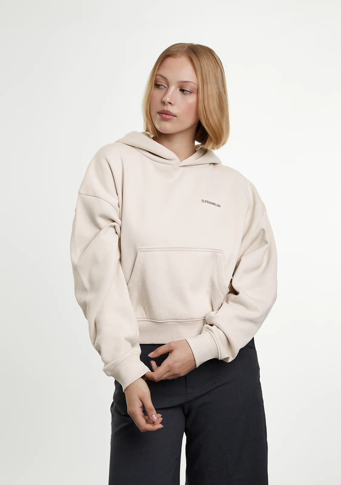 Esta sudadera gris de corte cropped y capucha cuenta con el logo D.Franklin en la parte superior izquierda a contraste en negro. Además, la parte trasera cuenta con un diseño exclusivo en el mismo color.